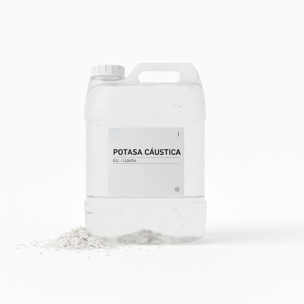 Potasa Cáustica (Hidróxido de Potasio) en escamas o líquida, de alta pureza y gran poder alcalino. Ideal para la fabricación de jabones, detergentes, biodiésel y procesos químicos e industriales que requieren máxima eficiencia y confiabilidad.